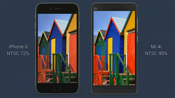 Показателен и слайд, на котором видно, что коэффициент использования площади экраном у MI 4i на целых 23 процента выше чем в эталонном IPhone!